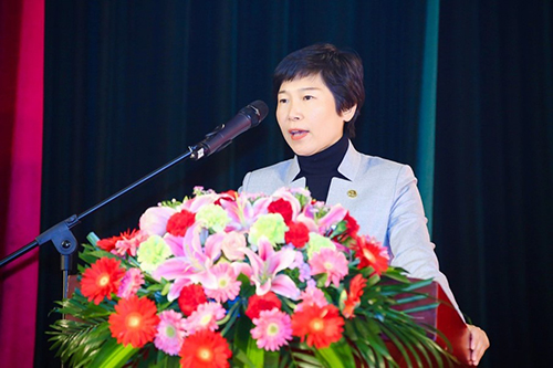 工建集團總裁張志萍發表講話,強調了文化、經營對于北方區的重要意義。她提到北方區是東方雨虹文化的起源地,也是雨虹人才的搖籃,希望北方區秉持雨虹精神,提升經營效益,執行集團要求,做到千難萬難,勇往直前。