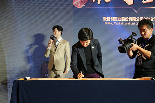 大會(huì)最后一個(gè)環(huán)節(jié)為匠心公約簽署。首創(chuàng)置業(yè)總裁鐘北辰、副總裁胡為民及與會(huì)的優(yōu)秀供應(yīng)商代表在匠心公約書(shū)上莊重簽名。
