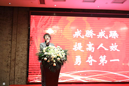 東方雨虹工程建材集團華南區總經理黃姣女士充分肯定了四川公司在2018年取得的成績,圍繞著“戒驕戒躁、提高人效、永爭第一”的理念,她要求四川公司全面“學習、追趕、超越”。