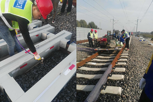 日前,在濟青高速鐵路、長琿城際鐵路的項目建設中,東方雨虹積極助力,聯合國家高分子重點實驗室、鐵道科學研究院等,將“高速鐵路固化道床防飛濺高分子材料涂層”新材料新技術成功應用于項目施工。 有砟軌道床在時速350公里/小時條件下容易發生道砟飛濺現象,此次“高速鐵路固化道床防飛濺高分子材料涂層”的研發與應用,通過將防飛濺涂層噴灑至道床表面區域,促使表面道砟顆粒發生固化,從而防止列車風荷載作用下發生道砟飛濺的現象,對保障線路的行車安全具有重要意義。