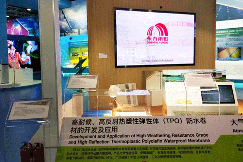 東方雨虹作為堅持自主創新的高新技術企業,將自主創新理念貫穿于產品研發、生產及工程實踐中。由東方雨虹開發并成功應用的高耐候、高反射熱塑性彈性體(TPO)防水卷材位于成果展中的節能環保展區。這款產品力學性能優異,使用溫域廣、耐微生物侵蝕、可回收利用,且具有反射、保溫節能功效,最高節能超過30%,已廣泛應用于大型公共建筑、工業及商用建筑等領域。 東方雨虹以“科技創新,產業報國”為指導思想,每年堅持投入營收的4%(2017年研發投入為4.65億元)用于創新和技術服務。堅持以國內領先、國際先進的創新成果引領行業的發展方向,推動行業的進步,增強公司和行業的可持續發展能力。