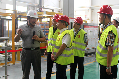 華砂公司董事長(zhǎng)方世畢、唐山生產(chǎn)基地廠長(zhǎng)閆瀟彬、副廠長(zhǎng)趙來(lái)望等陪同考察團(tuán)先后參觀了生產(chǎn)基地的各個(gè)生產(chǎn)車(chē)間,唐山二廠建設(shè)總指揮馬到原為考察團(tuán)詳細(xì)講解了公司的發(fā)展現(xiàn)狀、生產(chǎn)線的工作流程、技術(shù)的先進(jìn)性等。考察團(tuán)成員對(duì)東方雨虹的工藝特點(diǎn)、產(chǎn)品優(yōu)勢(shì)等興趣盎然,贊賞有加。 鄒遠(yuǎn)駿高度肯定了唐山東方雨虹取得的成績(jī),他表示生產(chǎn)基地的自動(dòng)化水平高、環(huán)保、創(chuàng)新、整潔,令人贊嘆。鄒遠(yuǎn)駿表示十分歡迎東方雨虹到綿竹發(fā)展,開(kāi)拓當(dāng)?shù)氐纳皾{銷售市場(chǎng),以期實(shí)現(xiàn)企業(yè)與社會(huì)效益的共贏。