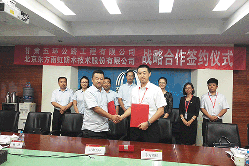 6月22-23日,甘肅五環公路工程有限公司黨支部書記、董事長崔建文,總經理高新民一行13人考察東方雨虹。東方雨虹集團副總裁王文萍、市場營銷總監徐萌、總裁辦主任齊芬、體系總監謝傳英、公路交通事業部經理田野等接待了考察團。