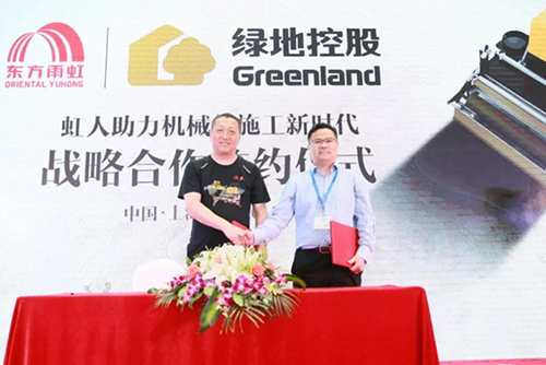5月28日下午,東方雨虹“智能制造:虹人助力機械化施工新時代”發(fā)布會在上海舉行。發(fā)布會中,東方雨虹先后與綠地集團、正榮集團舉行戰(zhàn)略合作簽約儀式。