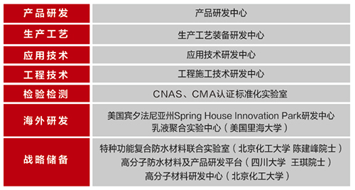 東方雨虹在美國費城成立防水涂料全球卓越研究中心,攜手美國里海大學乳液聚合實驗中心開發項目,與美國瀝青科技公司合作“改性瀝青研發項目”等,并與巴斯夫、陶氏、拜耳、塞拉尼斯、杰斯曼、荷蘭愛華、日本KANEKA等多家大型化工公司開展研發合作,汲取國外前沿技術。   東方雨虹將把該基地打造成為企業產研結合的國際化中轉站,加強與國際一流企業的溝通與合作,以嶄新的姿態贏得來自國際市場的更多肯定,同時促進在京高科技企業、大學院所等機構利用全球資源開展國際化創新,為發掘自身國際合作特色優勢貢獻力量。