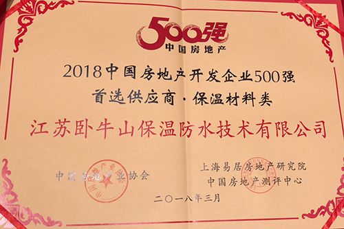 3月21日,“2018中國房地產500強測評成果發布會暨500強峰會”在京召開,會議發布了《2018中國房地產開發企業500強測評報告》及《2018中國房地產開發企業500強首選供應商服務商品牌測評報告》,臥牛山公司以16%的品牌首選率問鼎保溫材料類榜首。江蘇臥牛山公司總經理章程、副總經理兼總工程師熊少波出席此次會議。