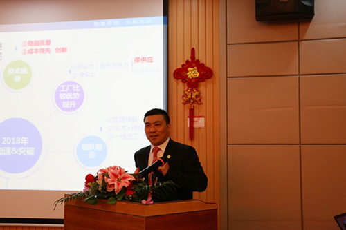 惠州生產基地廠長趙海濤先生從2017年指標完成情況、安全環保、質量管控、生產、技術創新、設備管理、精益管理、團隊建設等方面做了總結發言,深入剖析2017年工作的得失,重點對2018年的工作做了安排和部署。他表示,2018年惠州生產基地將會充滿更多挑戰,全體員工要化壓力為動力,變被動為主動,凝心聚力、拼搏向上、努力創新,贏戰2018。