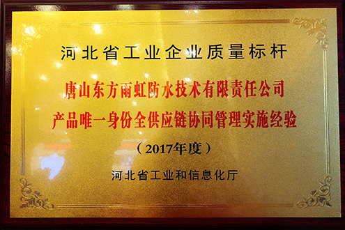 12月15日,2017年河北省工業(yè)企業(yè)質(zhì)量品牌建設(shè)經(jīng)驗交流會在石家莊召開。河北省工業(yè)和信息化廳公布2017年河北省質(zhì)量標桿名單,“唐山東方雨虹防水技術(shù)有限責任公司產(chǎn)品唯一身份全供應(yīng)鏈協(xié)同管理實施經(jīng)驗”光榮入選。廠長馬到原到場領(lǐng)獎并做現(xiàn)場匯報,與參會各企業(yè)進行質(zhì)量標桿典型經(jīng)驗交流。