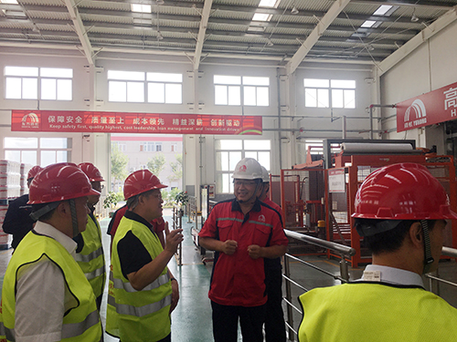 馬到原向考察團(tuán)介紹了唐山東方雨虹的整體情況、建設(shè)規(guī)模、企業(yè)優(yōu)勢等,重點講解砂漿車間的生產(chǎn)設(shè)備、工藝、產(chǎn)品等情況,并陪同考察團(tuán)參觀了砂漿車間的德國高效旋轉(zhuǎn)混合機、八口旋轉(zhuǎn)包裝機、高位碼垛機等國際先進(jìn)裝備。