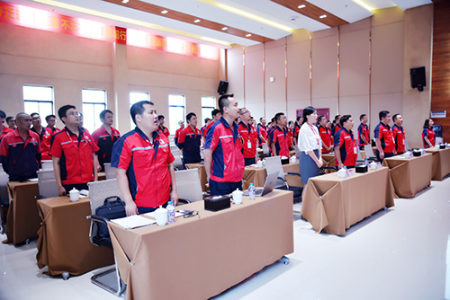 7月8日,岳陽東方雨虹年中總結大會在生產基地多功能廳隆重召開。