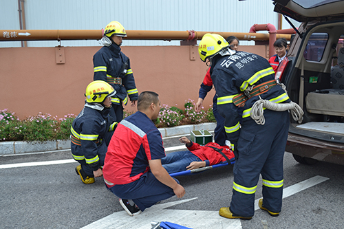 隨著長空一陣陣消防警報聲的嘶鳴,演練正式拉開序幕。現(xiàn)場各救援小組及時響應(yīng),聽從指揮,不到十分鐘,所有現(xiàn)場員工都成功疏散到安全區(qū)域,消防官兵也在第一時間趕到現(xiàn)場處置,將大火撲滅。醫(yī)療救護小組人員在演練中成功將一名受傷昏迷的員工用擔(dān)架抬出,并給其做了傷口處理包扎、心肺復(fù)蘇。