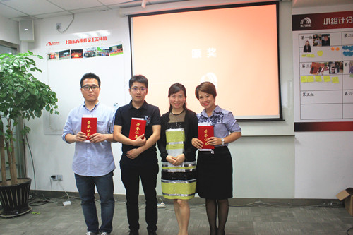 上海公司董事長兼總經理李建華為前三名頒獎(從左至右:王政 林龍飛 李建華 陳林)