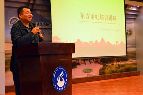 會上,城建建筑工程學院副院長張雙首先發言,向在座的師生們介紹了東方雨虹品牌文化。他倡導“高素質高級技能型專業人才化”發展之路,提倡不斷加強學生手動實訓能力,并希望同學們能在接下來的企業培訓中學以致用。