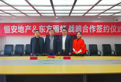 2月23日上午,臨汾恒安地產攜手東方雨虹,達成戰略合作。簽約儀式在恒安地產總部13層接待中心順利舉行,恒安地產總經理李延軍與東方雨虹山西省總經理孫厚軍出席了簽約儀式,并代表雙方企業簽訂戰略合作協議。 自2003年臨汾市恒安地產創建以來,秉承 “品質為重、信譽為本”的企業精神,在臨汾地區打造出多個示范小區。此次聯手東方雨虹,雙方將在地產項目的防水系統方面實現戰略合作,共同打造優質樓盤,更好的詮釋了兩家企業以品質為重、致力于安居樂民的愿景。