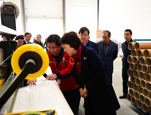 2月14日上午,湖南省委常委、統(tǒng)戰(zhàn)部長黃蘭香,省政協(xié)副主席楊維剛,省工商聯(lián)主席張健,岳陽市長劉和生,岳陽市委常委、統(tǒng)戰(zhàn)部長、副市長熊煒,云溪區(qū)區(qū)長余良勇等一行調研岳陽東方雨虹。岳陽東方雨虹廠長向鋒及各部門負責人接待調研組。