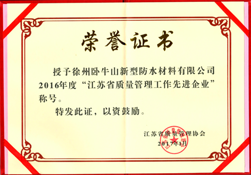 徐州臥牛山榮獲“2016年度江蘇省質(zhì)量管理先進(jìn)企業(yè)”稱號(hào)