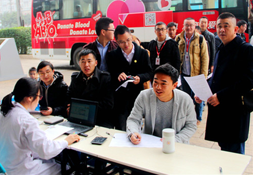 獻血車到達現(xiàn)場后,志愿者們排隊有序,填表、檢查、獻血,認真配合成都市血液中心工作人員完成血液采集,未參與獻血的員工則承擔了現(xiàn)場服務(wù)工作,為志愿者準備早餐及飲品,協(xié)助大家填表、發(fā)放獻血證,攙扶稍有不適的志愿者。獻血隊伍中,不僅有連續(xù)幾年參與的老面孔,也有剛剛?cè)肼毑痪玫男氯恕?/p>