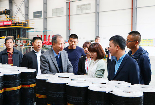 蘇林普米一行分別參觀了基地的卷材、涂料生產,倉儲與物流,產品檢測檢驗等工作環節,風行防水總經理呂學強詳細講解了5S現場管理、質量控制程序及技術研發實力。蘇林普米對風行防水先進的生產線、倉儲物流系統及雄厚的創新發展實力給予了高度認可和贊譽。參觀組成員一致認為,風行防水作為云南省規模較大的系統防水服務商,產品質量及服務十分值得信賴。
