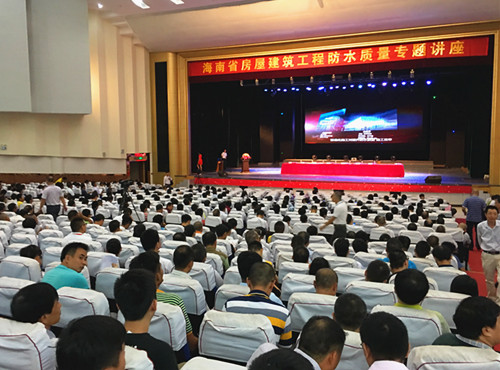 7月25日,由海南省住房和城鄉建設廳主辦,海口市住房和城鄉建設局、海口市建設工程質量安全監督站、北京東方雨虹防水技術股份有限公司及其海南經銷商承辦,海南省建筑業協會、海南省建筑防水協會、海南省房地產協會、海南省設計協會、海南省監理協會、海南省物業協會協辦的專題為“拒絕滲漏,提升海南建筑防水質量”的講座在海南工商職業學院大禮堂順利召開。海南省建筑工程行業近千人參加了此次專題講座,海南省住建廳副廳長劉聯偉、海口市住建局總工吳承敏等參加了此次會議并致辭。