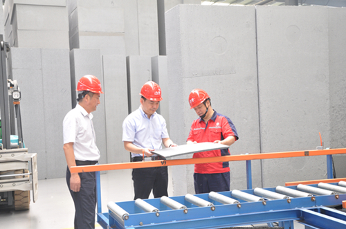 7月14日,新沂市市委副書記、市長陳堂清,市委常委婁可亮,發(fā)改經(jīng)濟(jì)委主任王曉東,新沂開發(fā)區(qū)管委會主任王君迎,國土局局長、環(huán)保局局長、財政局局長等相關(guān)局委領(lǐng)導(dǎo)考察東方雨虹徐州生產(chǎn)基地。 徐州生產(chǎn)基地廠長徐庭忠?guī)ьI(lǐng)考察組一行先后參觀了基地節(jié)能保溫材料生產(chǎn)線、智能化的聚氨酯、卷材生產(chǎn)線。考察組詳細(xì)聽取了公司在產(chǎn)品創(chuàng)新、兩化融合、標(biāo)準(zhǔn)化作業(yè)和員工收入、當(dāng)?shù)丶{稅及東方雨虹落戶新沂以來快速發(fā)展取得的成就等方面的工作匯報。