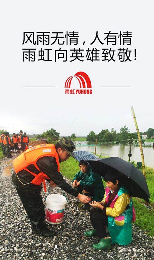 近日,南方多地區(qū)連降暴雨,安徽、武漢等地因長江水位上漲,遭遇嚴(yán)重的洪澇災(zāi)害,東方雨虹決定用實際行動助力受災(zāi)地區(qū),7月1日起至7月31日,【雨虹天貓旗艦店】的每筆訂單中將撥款50元用作湖北、安徽等受災(zāi)地區(qū)救援物資專項基金。