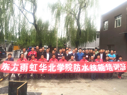 2016年5月10—12日,東方雨虹職業(yè)技術(shù)學(xué)院華北分院在順義羊房培訓(xùn)基地,如期舉行2016年第十一期防水施工技能培訓(xùn),來自東方雨虹50名防水施工工人和管理人員,參加了此次防水職業(yè)資格證書的培訓(xùn)。 在培訓(xùn)開班大會上,東方雨虹職業(yè)技術(shù)學(xué)院總院副院長彭作緒和華北分院副院長陳克豐作了開班致辭,并對防水工人未來的要求和此次培訓(xùn)要達(dá)到的標(biāo)準(zhǔn)提出了具體要求。在培訓(xùn)班班主任鐘友良等培訓(xùn)師的精心組織下,順利地完成了新一期的防水工人取證培訓(xùn)。本期培訓(xùn)期間,《中華建筑報(bào)》、《中國防水編輯部》等媒體相關(guān)負(fù)責(zé)人現(xiàn)場參觀考察并饒有興趣地親自動手體驗(yàn)防水施工。