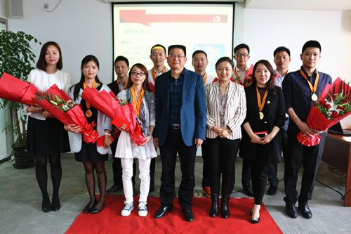 上海公司1季度銷售業(yè)績相比去年同期有一定幅度增長,這離不開銷售精英的突出表現(xiàn)。為表彰優(yōu)秀,鼓勵業(yè)務(wù)員工向榜樣學(xué)習(xí),傳遞正能量,本次頒獎會頒發(fā)了分司齡段超額完成任務(wù)的銷售精英獎、以及業(yè)務(wù)新人簽單排名前三甲的銷售新秀獎,共計10名員工(其中2名獲雙料獎)受到嘉獎。 銷售明星踏上紅毯,領(lǐng)取榮譽(yù)獎?wù)拢l(fā)表獲獎感言,回顧了自己在雨虹的成長歷程,重要的是感謝前輩同事以及領(lǐng)導(dǎo)對自己的指導(dǎo)幫助。會上,我們特邀2名獲獎?wù)呱钊敕窒砹俗约翰僮黜椖康慕?jīng)驗心得,供其他同事尤其是新業(yè)務(wù)員溝通學(xué)習(xí)。 上海東方雨虹總經(jīng)理方世畢、副總經(jīng)理王國朝、總經(jīng)理助理王晴分別為獲獎?wù)哳C獎,對業(yè)務(wù)人員的辛勤付出表示肯定和鼓勵,總經(jīng)理方世畢倡導(dǎo)所有業(yè)務(wù)員要像獲獎?wù)邔W(xué)習(xí),學(xué)習(xí)他們的韌勁和堅持,同時借此機(jī)會給在座的業(yè)務(wù)人員分享了成功操作項目的秘訣,以及成為優(yōu)秀業(yè)務(wù)員需具備的素質(zhì);最后,他希望全體業(yè)務(wù)員能借助東方雨虹的平臺虹成就自己的事業(yè),期盼新業(yè)務(wù)員盡快融入和成長。