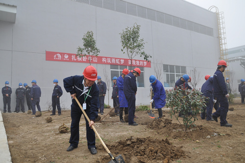 活動伊始,徐州生產基地廠長陽文新講解了本次植樹活動的意義與注意事項,并表示2016年徐州生產基地將嚴格按照“一個中心,二個打造,三個重點,四個成為”為指導思想,打造員工全員參與、部門高效協作的工作氛圍。植樹過程中,員工們積極參與、共同協作,挖坑、植樹、填坑、培土、踩實、扶正、澆水,精心呵護自己親手種下的樹苗,并貼上了寫有自己名字的標簽,希望它們能夠伴隨自己一起成長。