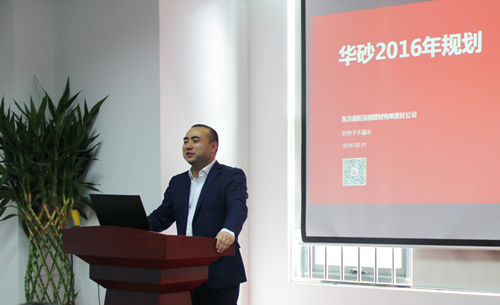 隨后,華砂商務(wù)總監(jiān)王曉峰先生、技術(shù)總監(jiān)史淑蘭女士以及副總工程師嚴(yán)興李先生,分別就華砂砂漿商務(wù)、研發(fā)、技術(shù)板塊2015年工作進(jìn)行總結(jié)分享,并為2016年工作開展做出詳細(xì)規(guī)劃。 緊接著,東方雨虹執(zhí)行董事長向錦明先生致辭。他說,過去的一年間,通過華砂全員的努力,華砂未來的發(fā)展已經(jīng)打下良好基礎(chǔ)。暢想未來,華砂毫無疑將堅(jiān)持中高端定位,順應(yīng)市場系統(tǒng)提供商的需求。并且在發(fā)展中要夯實(shí)產(chǎn)品體系、夯實(shí)產(chǎn)品服務(wù),用不斷學(xué)習(xí)夯實(shí)華砂,做到強(qiáng)化管理,提質(zhì)降耗,在新一年完成華砂向前發(fā)展的蛻變。