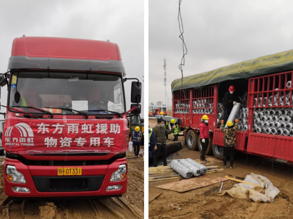 當(dāng)前,湖北地區(qū)物流壓力頗大。但他們?nèi)悦坝暄┨斐霭l(fā),經(jīng)連夜趕路,將東方雨虹馳援物資安全送入武漢雷神山醫(yī)院施工現(xiàn)場(chǎng)。到達(dá)后,更是抓緊一切時(shí)間,立刻組織卸貨、安排施工,爭(zhēng)分奪秒,一絲不茍,最終保質(zhì)保量完成施工任務(wù)。
