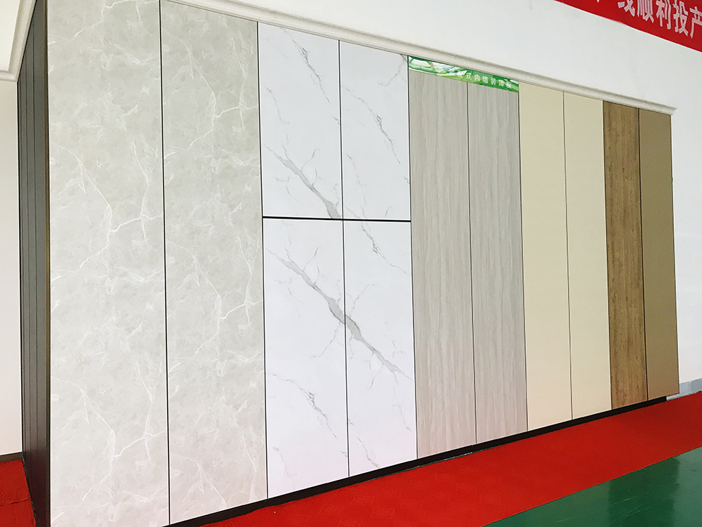 裝配式內墻板系統由裝飾墻面板、調平模塊、收口模塊、裝飾模塊等組成,分為明縫系統和隱縫系統,解決了裝配式墻面產品不防火、易翹曲形變,表面平整度差等問題。裝配式內墻板系統把傳統的必須在現場分層施工完成的建筑內墻裝飾工藝部分在工廠內完成,具有質量批次穩定、裝配效率高、綠色節能等優點。基板可根據實際需要,選擇高強度無機防火板或環保竹木纖維板;飾面以水性環保裝飾膜為主,可選擇仿木紋、石紋、墻紙、皮革、墻布等多種裝飾效果。此次內墻板投產產線共推出五大系列供客戶選擇:極簡無印系列、森林原木系列、溫暖織物系列、靜謐石材系列以及輕奢皮質系列。同時根據設計需求,系統可選擇加設保溫復合層,以增強室內保溫節能效果。