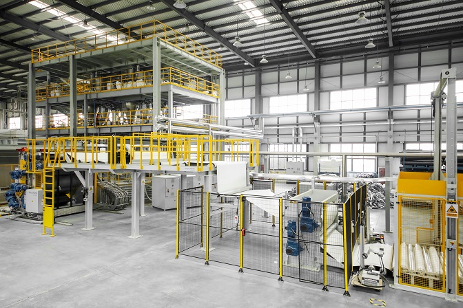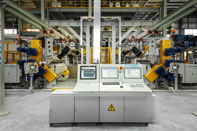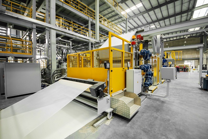 東方雨虹TPO生產線引進自國際知名化工機械設備制造商克勞斯瑪菲貝爾斯托夫公司,工藝先進、精準連續、均勻穩定、綠色節能、高效安全。