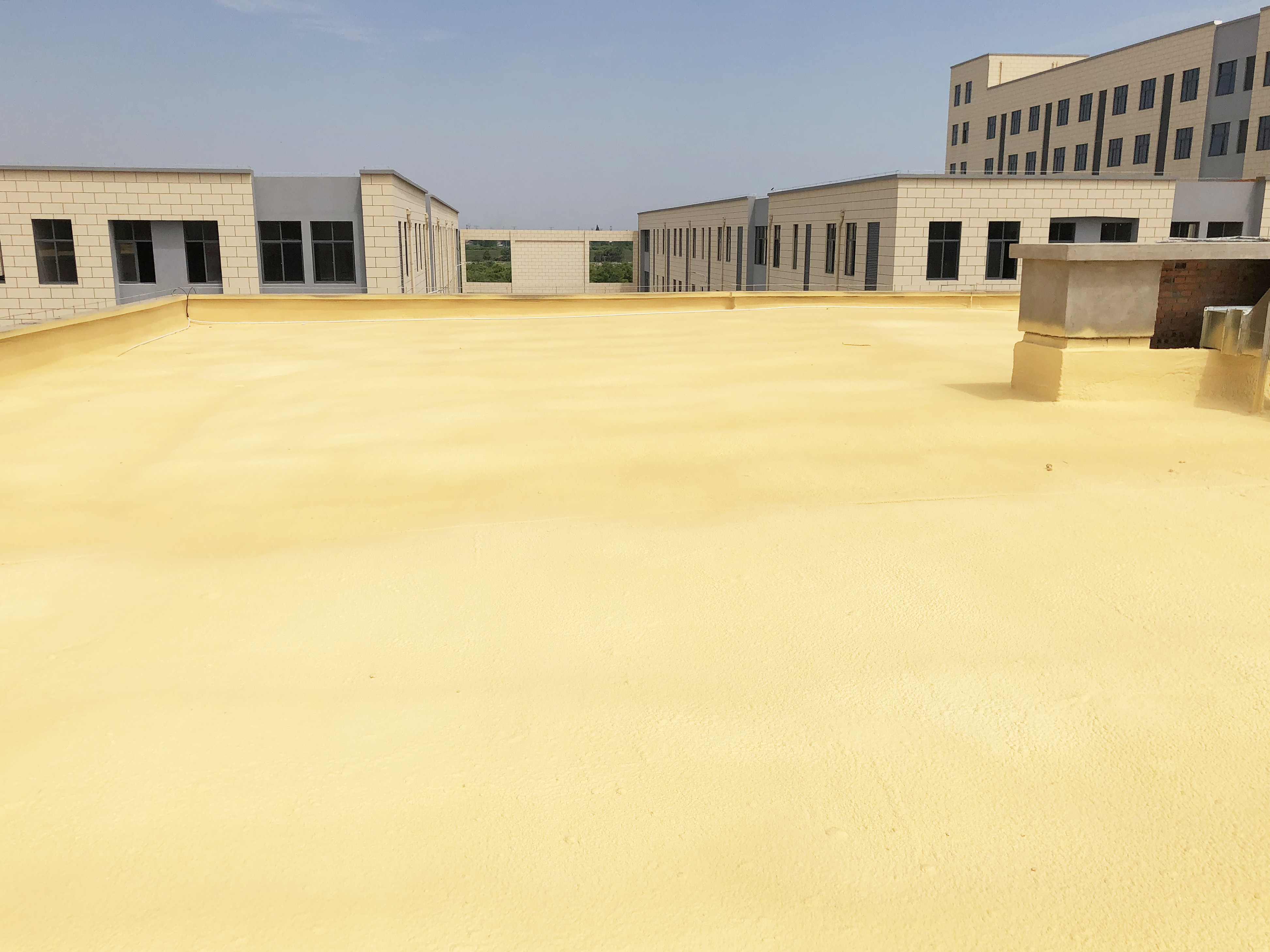 尤其適合形狀復(fù)雜、管道縱橫的基層表面施工,易于保證工程質(zhì)量。聚氨酯硬泡屋面施工時(shí)不需大型吊裝設(shè)備,一套設(shè)備在良好條件下每天可完成屋面1000㎡。