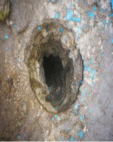 在拆除開挖的屋面上發現,粘貼時采用的是濕鋪法工藝(即用素水泥漿粘貼工藝),卷材搭接不可靠,施工工藝不規范等,屋面雨水通過質量缺陷部位滲漏至底部,防水層與屋面結構板之間的泡沫混凝土構造體系內存在松散多孔空間,滲漏水能夠在構造層內大量集聚、蔓延擴散,造成大面擴散性滲漏水(竄水現象)。