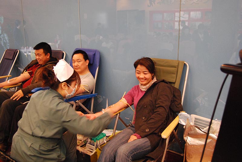 12月19日,北京的室外氣溫已接近零下10度。位于北京朝陽區(qū)高碑店的北京東方雨虹公司底樓的大會議室里卻暖意融融。2009年歲末東方雨虹義務(wù)獻血活動在此進行。此前,70余名來自公司各部門的員工報名參加本次獻血。